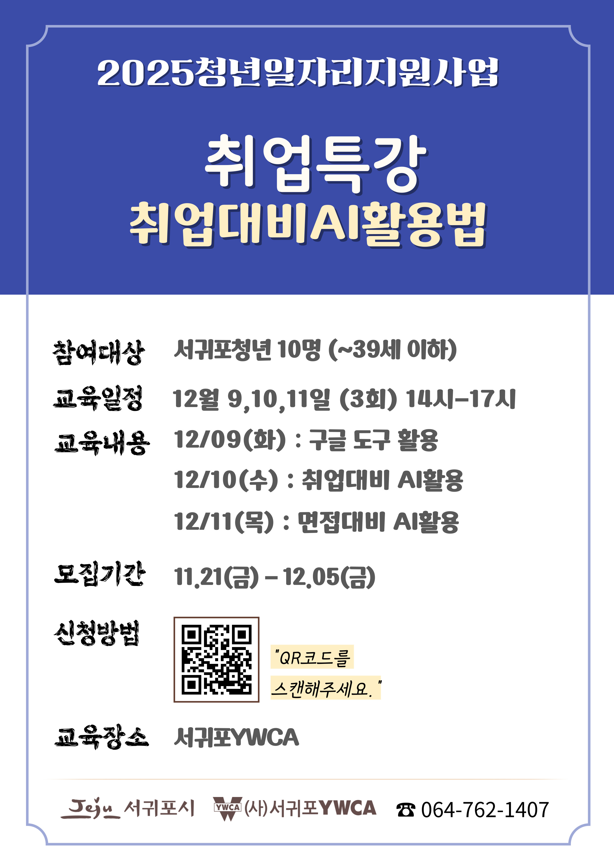 *문의 - 서귀포YWCA 청년일자리지원센터 762-1407
