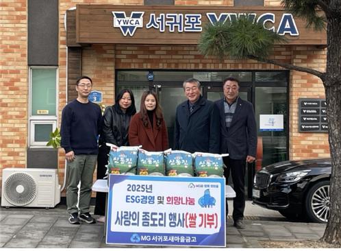 (사)서귀포YWCA(회장 김정미)는 서귀포새마을금고(이사장 윤재순)로부터 11월 27일(목) 서귀포YWCA회관에서 후원물품 쌀10kg 20개를 전달받았다.이번 후원물품 전달을 통해 지역사회 나눔문화 확산에 기여하고, 서귀포YWCA 청소년운동을 지원하는데 사용하게 된다. 서귀포새마을금고 관계자는 “서귀포YWCA가 지역 도서관운영, 청소년활동을 활발하게 하고 있는 만큼 사회공헌 활동을 통해 따뜻한 지역사회 만들기에 함께 하고자 한다.”고 밝혔다.